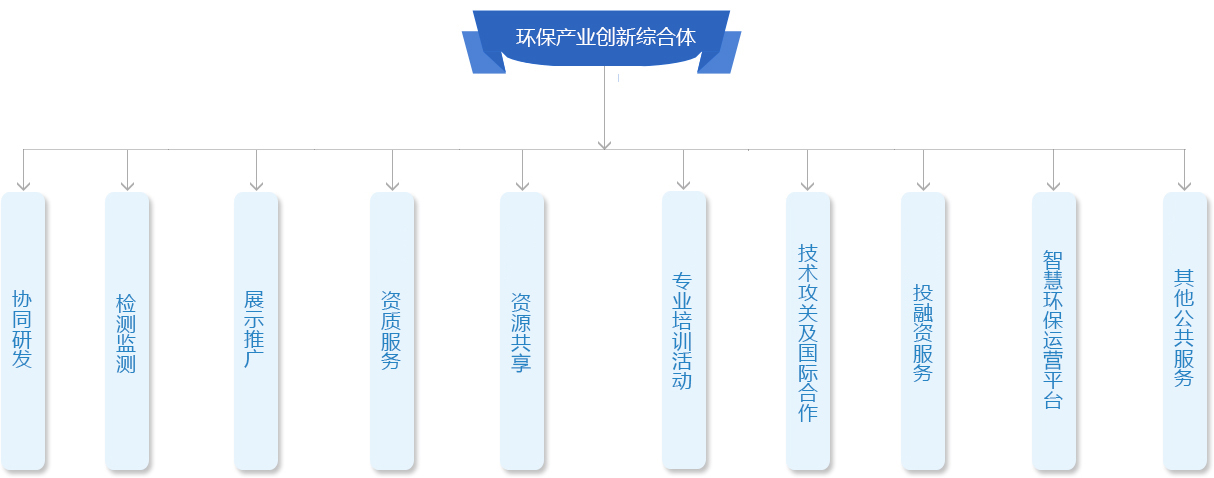中電環(huán)保發(fā)揮行業(yè)龍頭作用,聯(lián)合“政產(chǎn)學(xué)研金才”綜合資源,打造“環(huán)保產(chǎn)業(yè)創(chuàng)新綜合體”,包括:“二區(qū)、三聯(lián)盟、三中心、七功能”。 二區(qū):國(guó)家級(jí)環(huán)保服務(wù)業(yè)集聚區(qū)、江蘇省級(jí)生態(tài)環(huán)境產(chǎn)業(yè)創(chuàng)新集聚區(qū)。 三聯(lián)盟:環(huán)保產(chǎn)業(yè)技術(shù)創(chuàng)新聯(lián)盟(科技部1個(gè)、生態(tài)環(huán)境部1個(gè)、南京市1個(gè)),同時(shí)成立黨建聯(lián)盟。 三中心:環(huán)保產(chǎn)業(yè)創(chuàng)新中心暨創(chuàng)新公司。分別聯(lián)合南大、東大、河海等及其人才團(tuán)隊(duì)、省環(huán)科院、地方政府,通過股權(quán)緊密合作,按照“中心+公司”模式建設(shè)新型研發(fā)機(jī)構(gòu)。 以“產(chǎn)業(yè)+平臺(tái)”雙翼模式發(fā)展產(chǎn)業(yè),以市場(chǎng)需求導(dǎo)向研發(fā),促進(jìn)科技創(chuàng)新、人才創(chuàng)業(yè)、成果轉(zhuǎn)化和產(chǎn)業(yè)集聚,孵化高科技企業(yè),賦能產(chǎn)業(yè)創(chuàng)新發(fā)展,打造環(huán)保支柱產(chǎn)業(yè)。