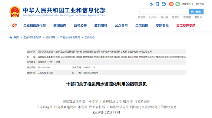 近日,國家發(fā)展改革委聯(lián)合科技部、工業(yè)和信息化部、財政部、自然資源部、生態(tài)環(huán)境部等十部門共同印發(fā)了《關(guān)于推進(jìn)污水資源化利用的指導(dǎo)意見》(以下簡稱《指導(dǎo)意見》),對全面推進(jìn)污水資源化利用進(jìn)行了部署。
